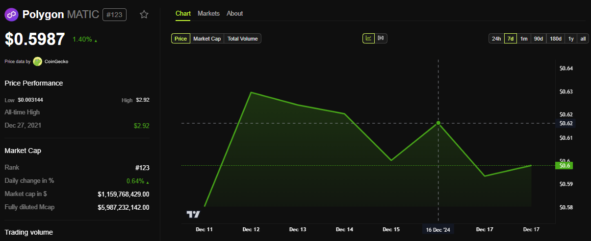 Heti tämän raportin julkaisun jälkeen, joka jaettiin ensimmäisenä maanantaina, Polygonin POL romahti. Token yrittää kuitenkin palautumista tiistaina laajemman markkinatrendin mukaisesti.
