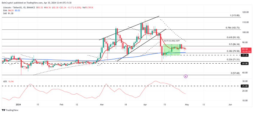 Litecoinin (LTC) hinta käy kauppaa keskeisellä vastustasolla, ja saman kääntäminen tueksi voi nostaa LTC:n 90 dollariin.