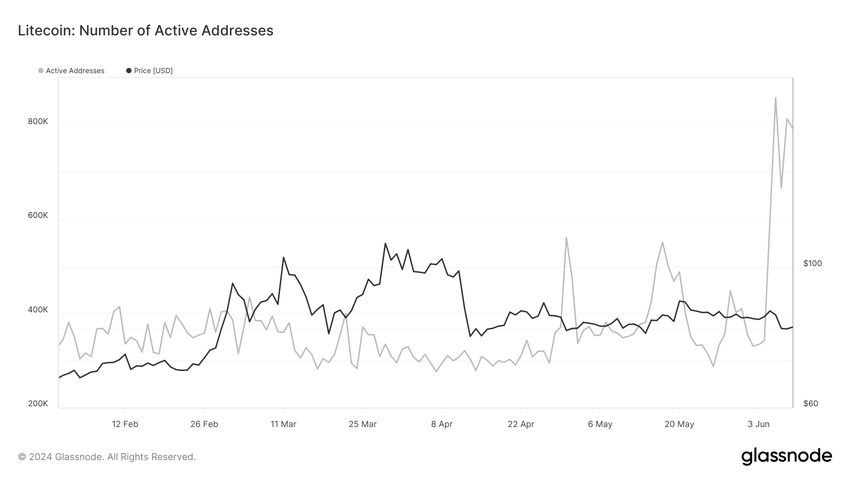 Viime aikoina Litecoinin aktiivisten osoitteiden huomattava kasvu – 340 000:sta 860 000:een vain viime viikolla – viittaa käyttäjien sitoutumisen nousuun.