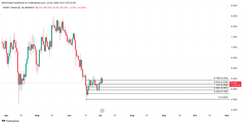Jos suuntaus jatkuu, NEARin hintojen nousutrendi kohti vastustusta voi muuttua haastavaksi. Se voi jopa laskea käydäkseen kauppaa 5,22 dollarissa.