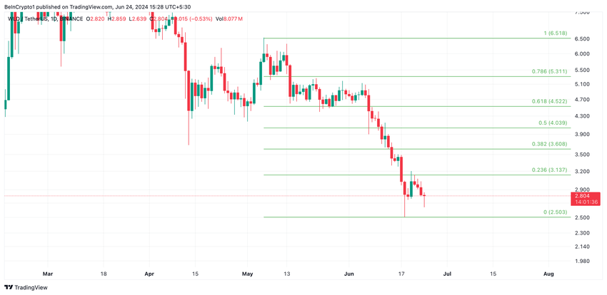 Jos tämä suuntaus jatkuu, WLD:n hinta voi romahtaa 2,50 dollariin.