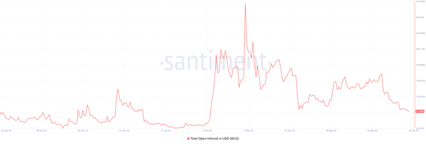 WLD:n avoin kokonaiskorko oli tätä kirjoitettaessa 98 miljoonaa dollaria. Se on ollut laskutrendissä sen jälkeen, kun se nousi kaikkien aikojen korkeimpaan 440 miljoonaan dollariin 9. maaliskuuta. Pelkästään tässä kuussa se on laskenut 51 prosenttia.