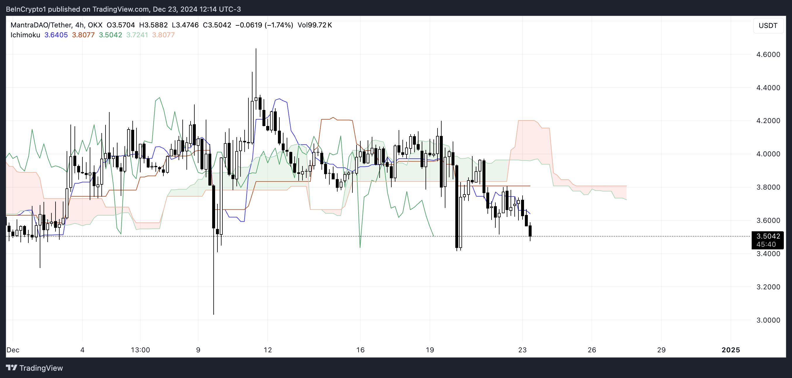 Ichimoku Cloud -kaavio OM:lle osoittaa karhumarkkinan kehittyvän viimeisen viikon aikana.
