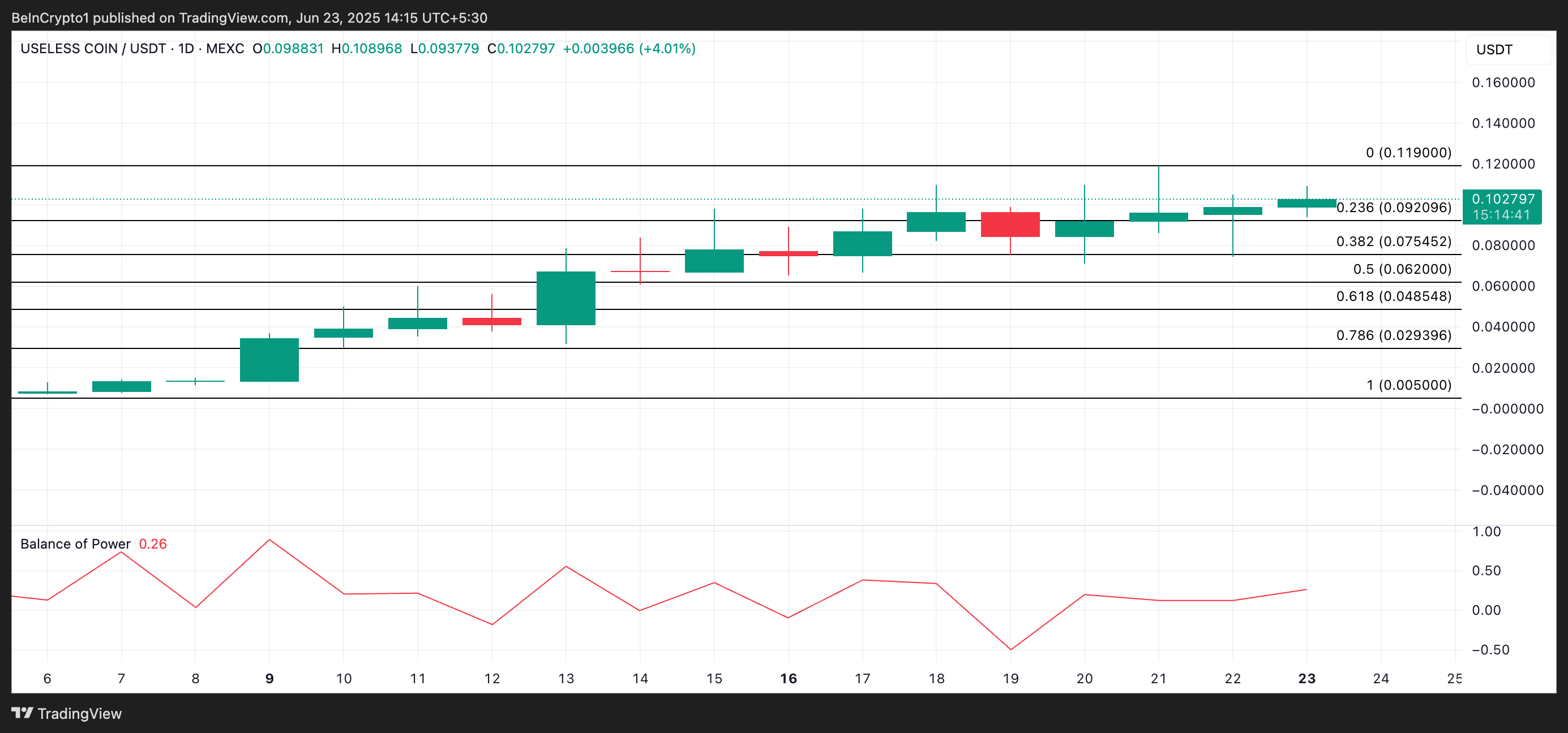 USELESS on vastustanut laajempaa markkinanotkahdusta viime viikkoina ja noussut kaikkien aikojen korkeimpaan hintaan 0,119 dollaria 21. kesäkuuta. Vaikka se on sittemmin hieman laskenut, sen päivittäinen kaavio viittaa siihen, että markkinoilla on edelleen noususuuntausta.