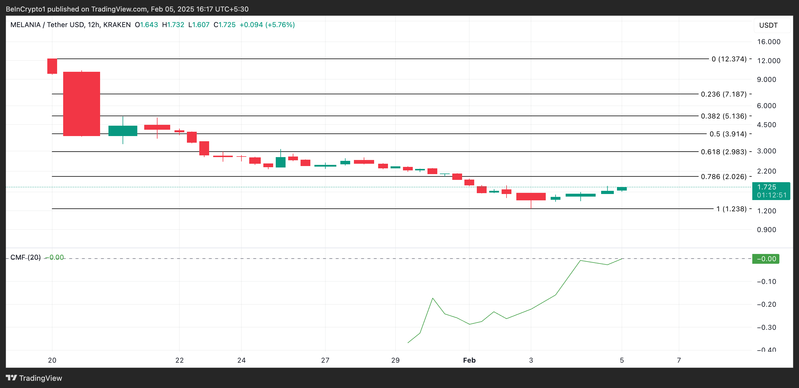 Melania Trumpin meemikolikko, MELANIA, on tehnyt vahvan paluun, ja sen hinta on noussut 19 % viimeisen 24 tunnin aikana. Tämä tapahtui sen jälkeen, kun meemikolikko syöksyi kaikkien aikojen alhaisimpaan hintaan 1,23 dollaria maanantain kaupankäynnin aikana.
