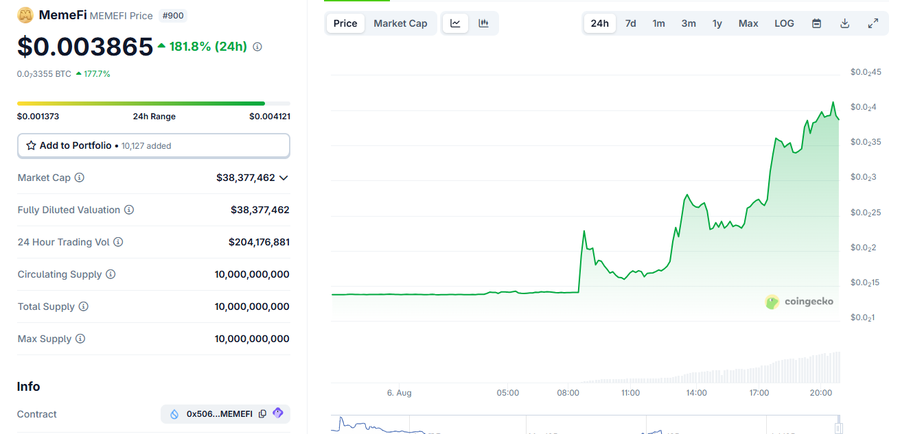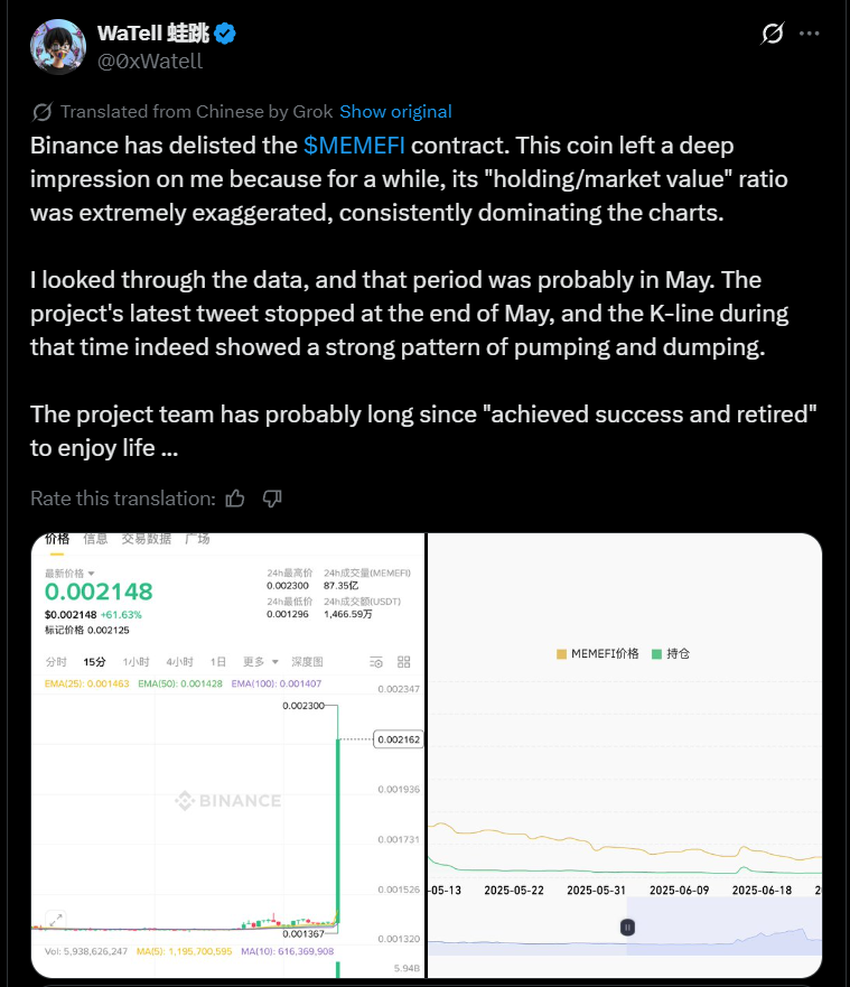 MEMEFI:n räjähdysmäinen hintaralli alkoi, kun Binance ilmoitti poistavansa MEMEFI perpetual-sopimukset futuuriensa alustalta 11. elokuuta 2025 mennessä.