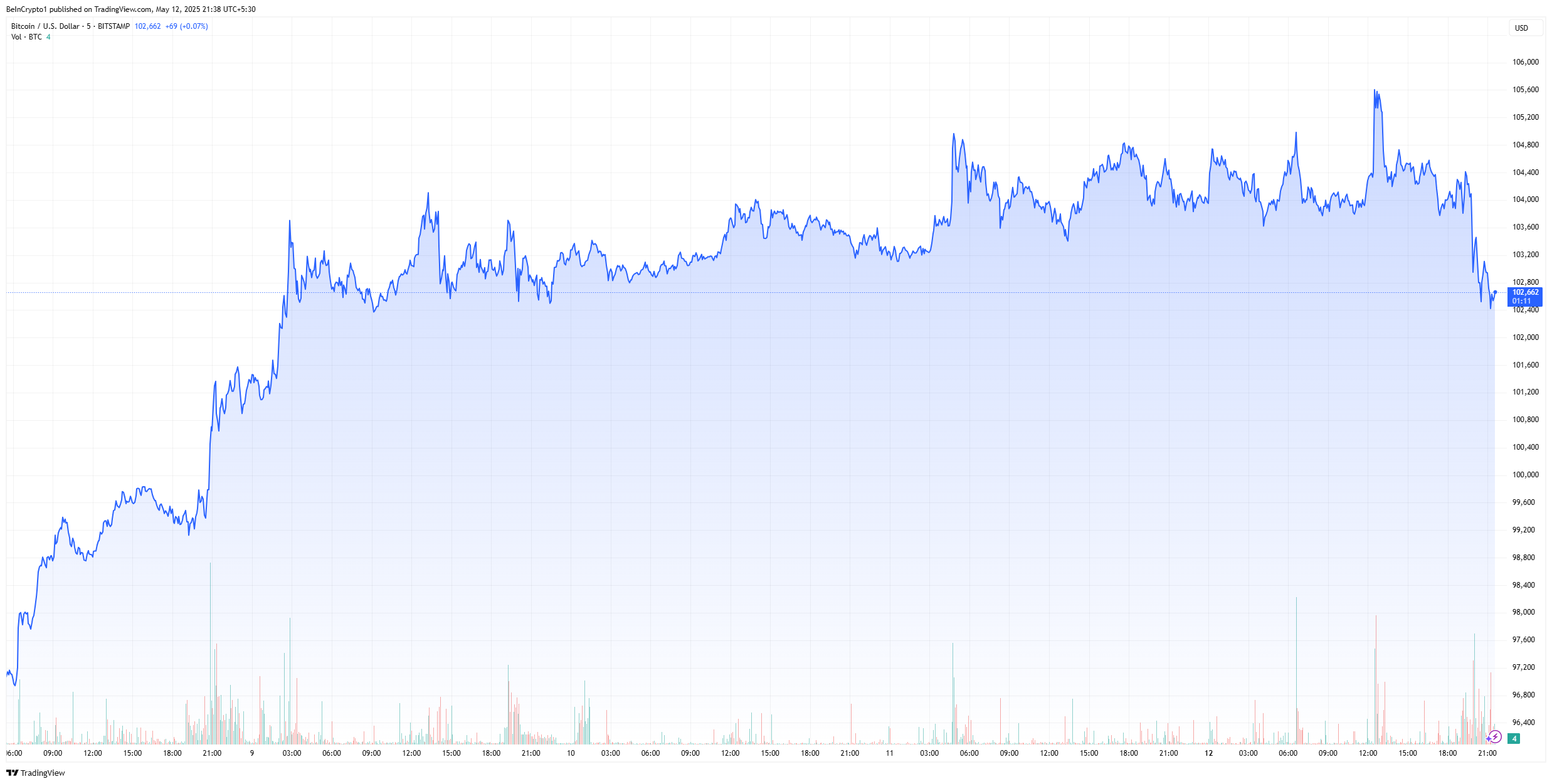 Kun Trump ilmoitti ilmeisestä aselevosta tullikiistassa, BTC nousi 105 000 dollariin. Tämä markkinaympäristö on antanut Strategylle kaivattua hengitystilaa.