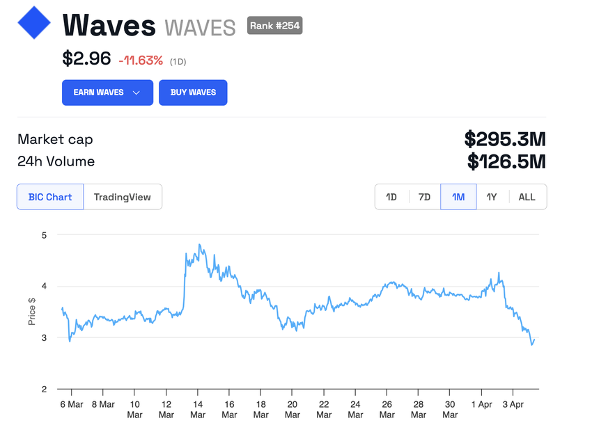 Tämä kehitys osuu kuitenkin samaan aikaan sen hinnan lievän laskun kanssa, jota leimaa 11 prosentin lasku viimeisen päivän aikana. Volatiliteettia lisää se, että Binance on asettanut Wavesin tarkkailutunnisteen alle, mikä merkitsee kohonnutta riskiä ja volatiliteettia verrattuna muihin rahakkeisiin.