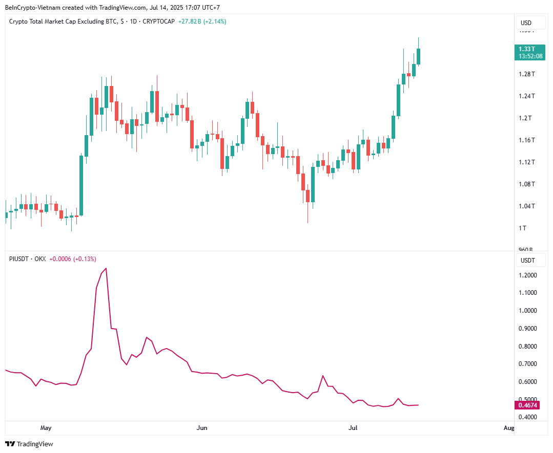 Toisin kuin useimmat altcoinit, Pi Coinin hinta ei juurikaan muuttunut. Se pysyi edelleen noin 0,46 dollarissa.