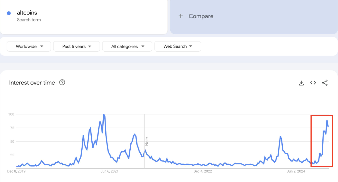 Deutscher viittaa kryptovaluuttojen Google-hakumäärien nousuun todisteena kasvavasta yksityis-sijoittajien kiinnostuksesta. Uusien sijoittajien tulviessa markkinoille he yleensä suuntautuvat tunnettuihin alustoihin ja yksinkertaisiin sijoitusvaihtoehtoihin.
