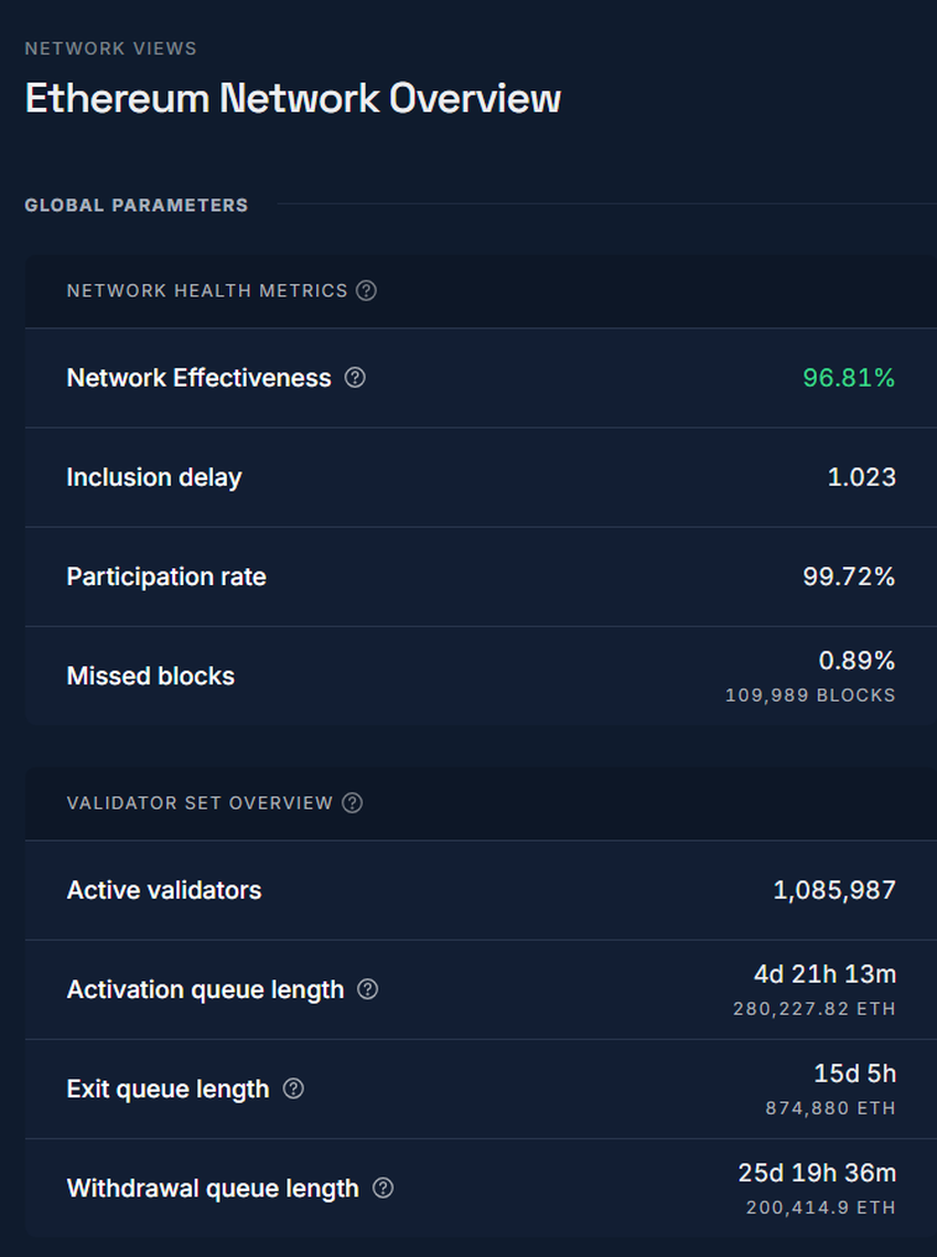 X-vaikuttaja @notgrubles huomautti, että ETH:n validoijien poistumisjono kaksinkertaistui 3,7 miljardiin dollariin neljässä päivässä. Elokuun 18. päivänä Ratedin tiedot osoittivat, että yli 1,075 miljoonaa ETH:ta odotti poistumista, mikä venytti käsittelyajat 40 päivään. Uuden ETH:n panostaminen kestää alle viisi päivää.
