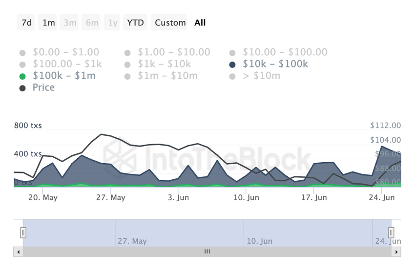 Kun omaisuuserän suuri transaktiovolyymi kasvaa, se osoittaa sen suurten haltijoiden lisääntynyttä kiinnostusta ja aktiivisuutta. Se viittaa usein siihen, että nämä sijoittajat luottavat omaisuuserän tulevaan kehitykseen.
