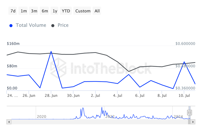 IntoTheBlockin tietojen mukaan 11. heinäkuuta MATICin suuri transaktiovolyymi oli 103 miljoonaa dollaria. Tämä edusti 1 493,81 prosentin nousua edellisen päivän 6,45 miljoonan dollarin transaktiomäärästä.
