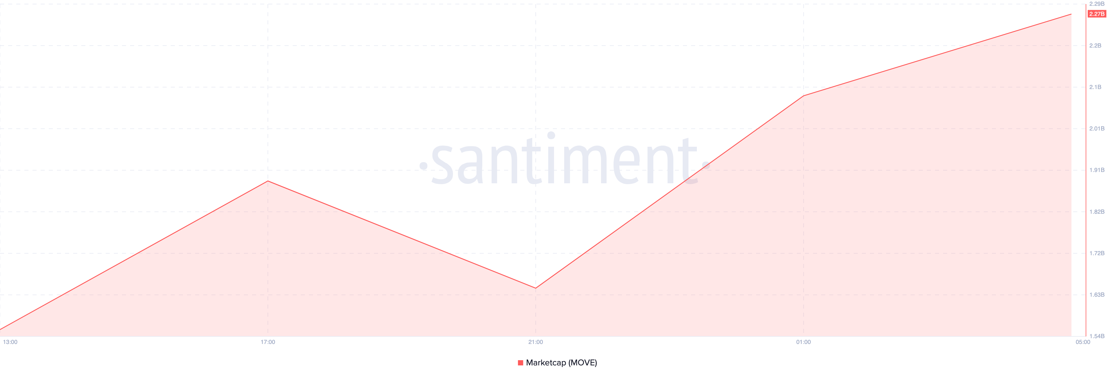 Kun BeInCrypto raportoi ensimmäisen kerran MOVE-tokenista, sen markkina-arvo oli 1,60 miljardia dollaria. Tänään tämä luku on noussut 2,27 miljardiin dollariin—selkeä osoitus sen kasvavasta vetovoimasta. Markkina-arvo, joka määritetään kertomalla liikkeessä oleva tarjonta hinnalla, nousee luonnollisesti hinnan noustessa.