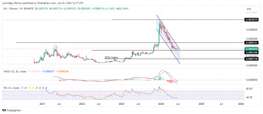 Karhujen käsissä altcoin on kuitenkin sittemmin menettänyt jonkin verran maata peitettynä ja käy kauppaa 0,00036:lla kirjoitushetkellä. RSI-näkymien perusteella injektiivinen hinta voi pidentää laskua alle 0,00033 tukitason ennen mahdollista elpymistä.