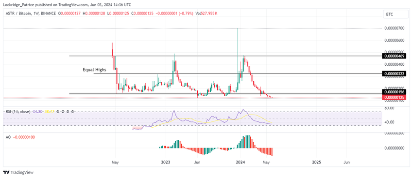 Vallitsevan laskutrendin keskellä Astar-hinnan laskeva teesi kääntyisi vasta, kun se on vakaasti lähellä 0,00000500 psykologista tasoa.