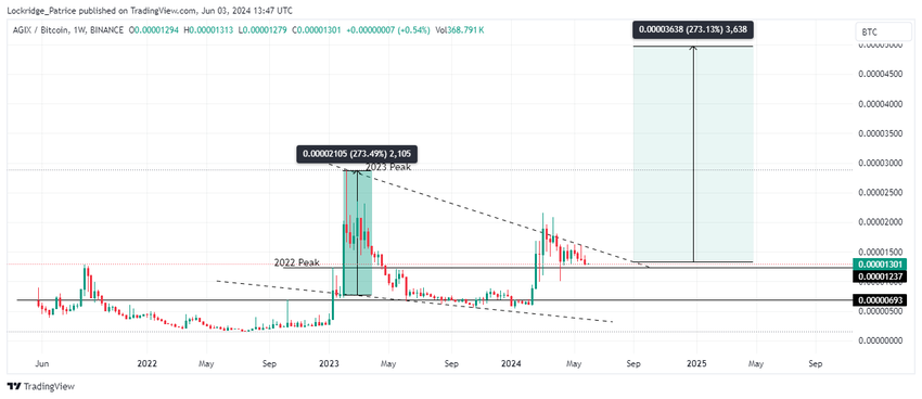 Teknisestä näkökulmasta AGIX-hinta on valmistautunut nousevaan liikkeeseen, kun se konsolidoituu laskevan kiilakuvion sisään. Tämä nouseva käänteinen tekninen muodostelma voisi tarjota hyvän sisääntulon ylemmän trendiviivan yläpuolella olevaan purkautumiseen.
