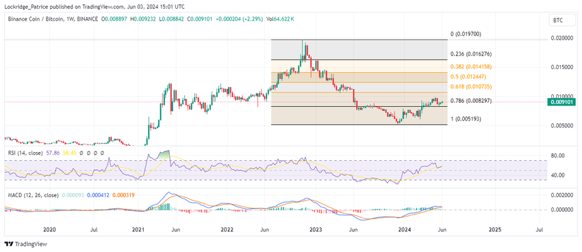 BNB:n hinnan korkeammat pohjat, joita reunustaa nouseva RSI, viittaavat kasvavaan nousuvauhtiin ja tunnelmaan.