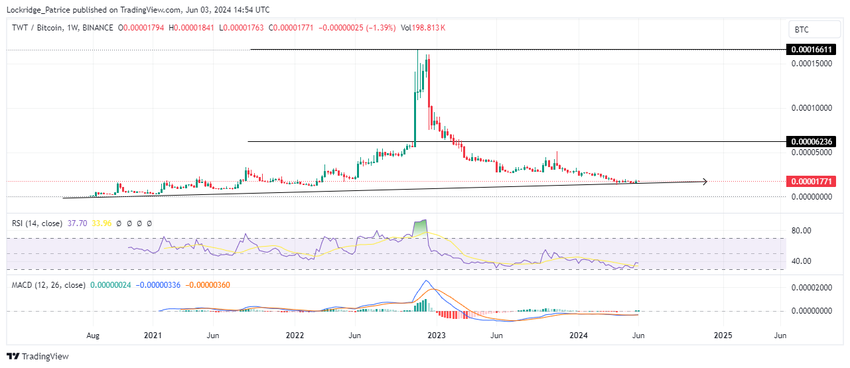 Siitä huolimatta TWT:n hinta pysyy tiheikössä, ja RSI ja MACD merkitsevät tuuditusmarkkinoita, joilla ei ole nousuvauhtia.