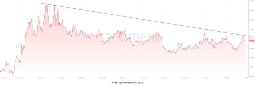 Hinnan osalta tämä lasku tarkoittaa, että laskutrendi heikkenee rahalaitosten merkintöjen mukaisesti. Mutta kääntyäkseen ylöspäin, johdannaismarkkinoille on tultava enemmän rahaa. Jos näin tapahtuu, NOT 0,016 dollariin alkaa liikkua.
