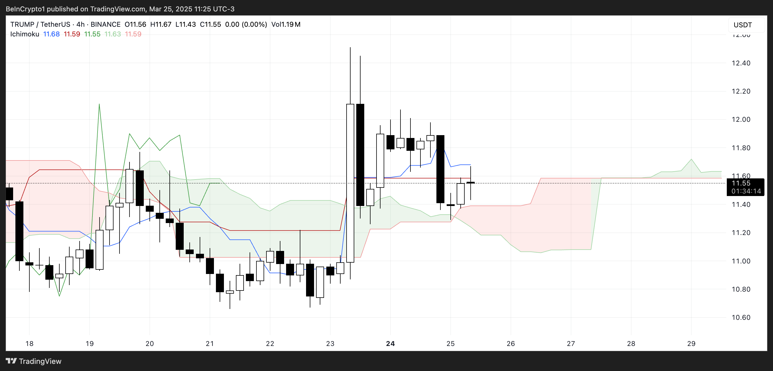Ichimoku Cloud osoittaa, että TRUMPilla ei ole selkeää suuntaa