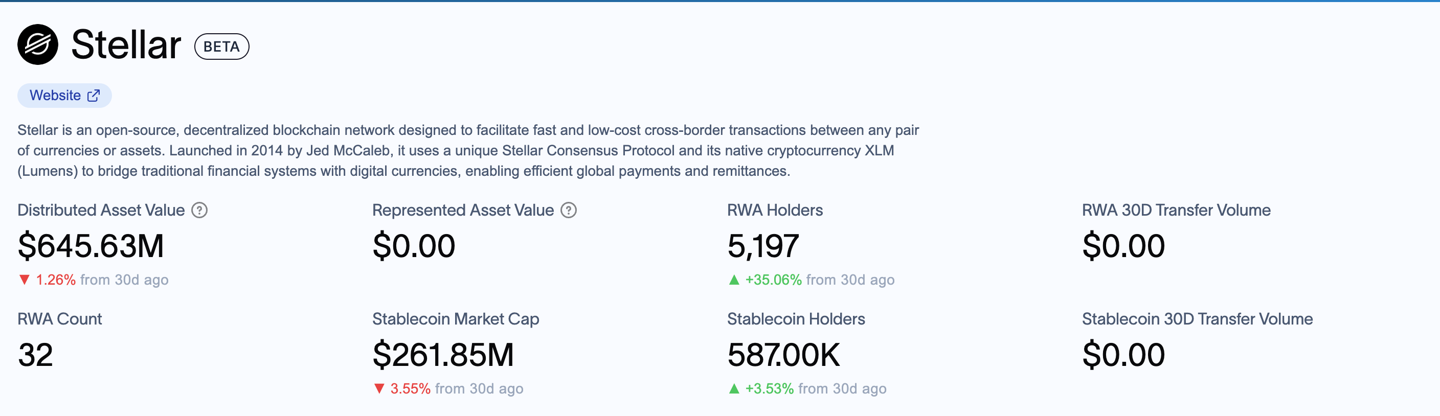 Vaikka RWA-haltijoiden määrä Stellarissa on kasvanut jyrkästi viimeisen kuukauden aikana, verkossa olevien omaisuuserien kokonaisarvo on pienentynyt.