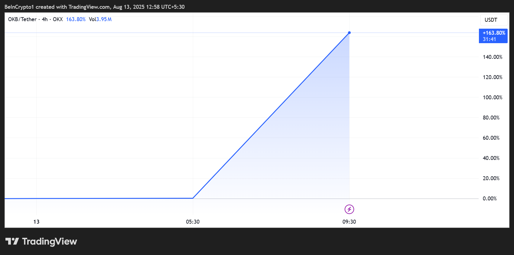 OKB, kryptopörssi OKX:n oma token, nousi yli 110 % vain tunnissa keskiviikkona, saavuttaen kaikkien aikojen ennätyksen (ATH) 142,88 dollaria.