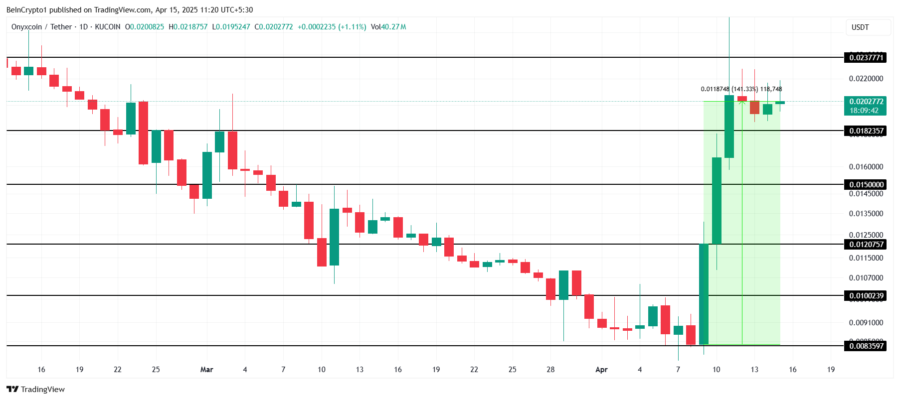 Onyxcoin (XCN) on kokenut poikkeuksellisen hintarallin viime viikolla, kirjaten 141 % nousun, joka nosti sen arvon 0,0202 dollariin.