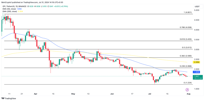 Jos tämä trendi jatkuu, OP:n hinta romahtaa edelleen. Sen seuraava hintatavoite on yhdeksän kuukauden pohja, 1.22 dollaria.
