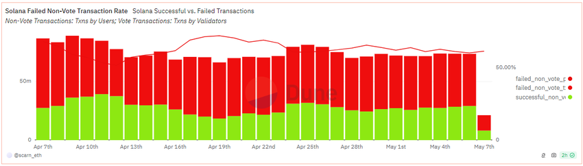 Tämä lähestymistapa, nimeltään “Bitcoin on Solana”, herätti aluksi jännitystä, mutta ei kestänyt kauan. Malmin louhinnan voimakas nousu vaikutti ruuhkaongelmaan, jonka vuoksi noin 75% Solana-verkon tapahtumista epäonnistui huhtikuussa. Oren uuden mekanismin synnyttämien kaivostransaktioiden suuri määrä aiheuttaa viivästyksiä ja epäonnistumisia transaktioiden käsittelyssä.