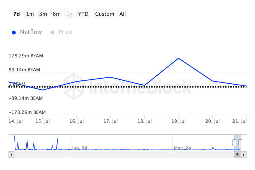 Jotkut valaat ovat kuitenkin hyödyntäneet BEAMin 15 prosentin hintarallia myydäkseen osan omistuksistaan voitolla viime viikolla. Tämä voidaan päätellä sen suuren haltijan nettovirtauksen 30 prosentin laskusta viimeisten seitsemän päivän aikana.