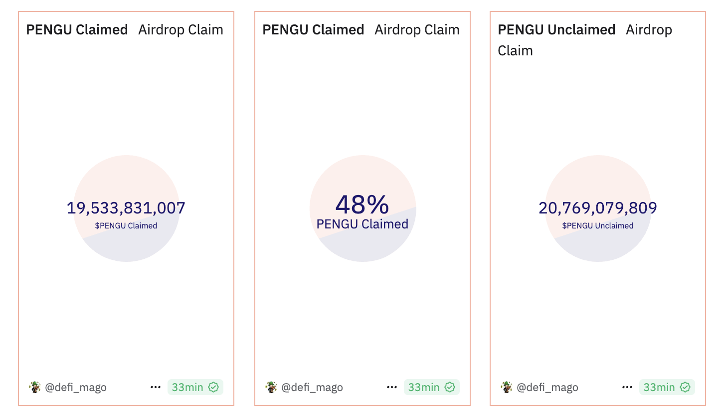 48 % PENGU:sta saatavilla olevasta airdropista lunastettiin
