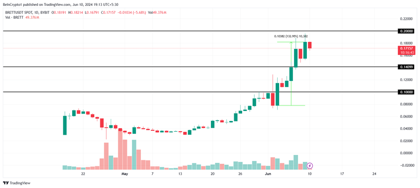 Brettin hinta on noussut massiivisesti 113 % viimeisen neljän päivän aikana, mikä on nostanut tokenin arvon 0,18 dollariin. Meemikolikko on nyt tuuman päässä 0,20 dollarin hinnan saavuttamisesta, mikä johtaisi omaisuuserän uuteen kaikkien aikojen ennätykseen.