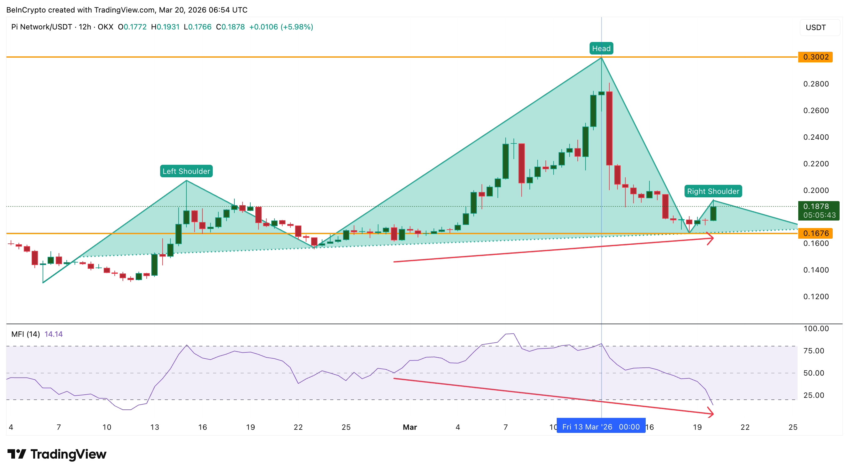 Pi Coinin (PI) hinta muodostaa head and shoulders -kuviota 12 tunnin kaaviossa, mikä viittaa jopa 45 %:n laskuun. Notkahduksia ostavat sijoittajat näyttävät vetäytyvän.