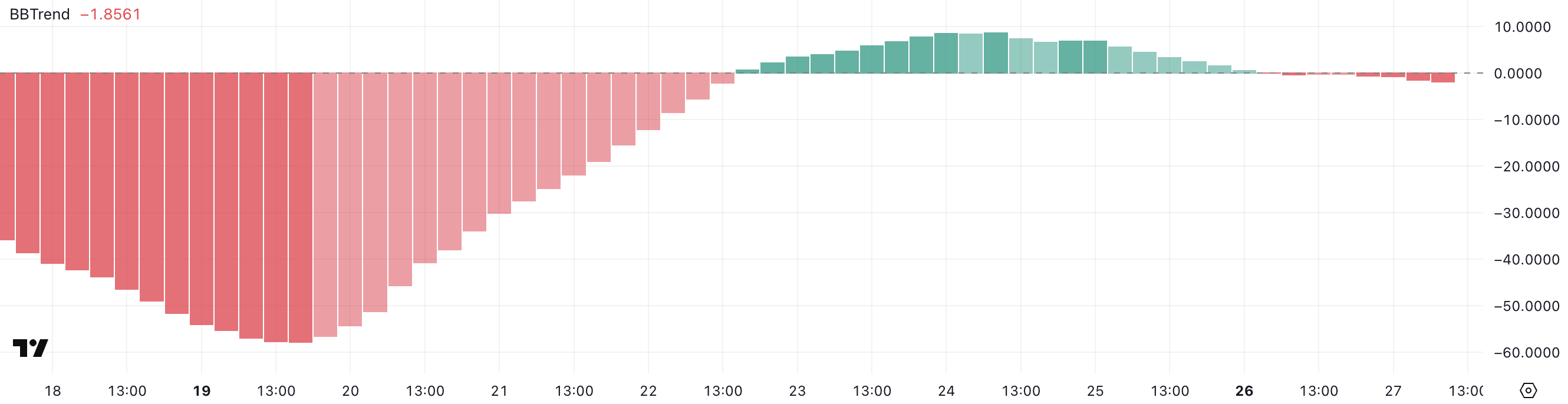 BBTrend on tunnelmaindikaattori, joka mittaa hintatrendien voimakkuutta ja suuntaa Bollinger Bands -kaavioiden perusteella.