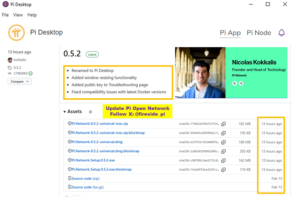 Torstaina Pi Core Team julkaisi merkittävän päivityksen työpöytäsovellukseensa, joka on nyt nimeltään Pi Desktop (aiemmin Pi Node), versiossa 0,5,2.