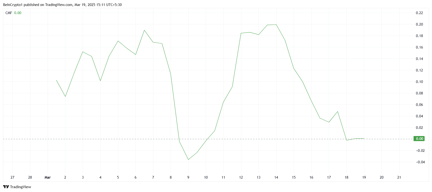 Jos CMF laskee nollaviivan alapuolelle, se osoittaisi, että sijoitukset hallitsevat täysin, mikä voisi pahentaa myyntiä. Tämä muutos johtaisi vielä suurempaan laskupaineeseen omaisuusvaralle, pidentäen negatiivista trendiä ja painaen hintaa entisestään alaspäin.