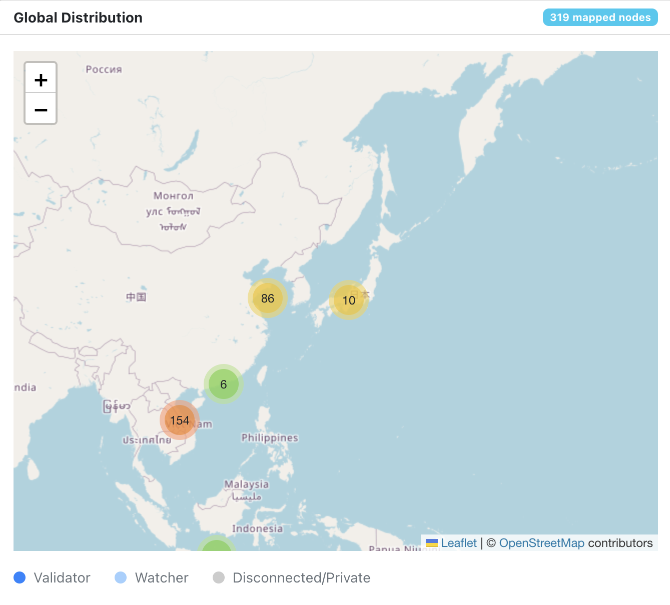Piscanin tietojen mukaan Vietnamissa on 154 verkon 319 solmusta maailmanlaajuisesti, mikä vastaa 48,2 % kokonaismäärästä. Kirjoitushetkellä 33 76:sta yhdistetystä solmusta sijaitsi siellä, mikä korostaa Vietnamin hallitsevaa asemaa.