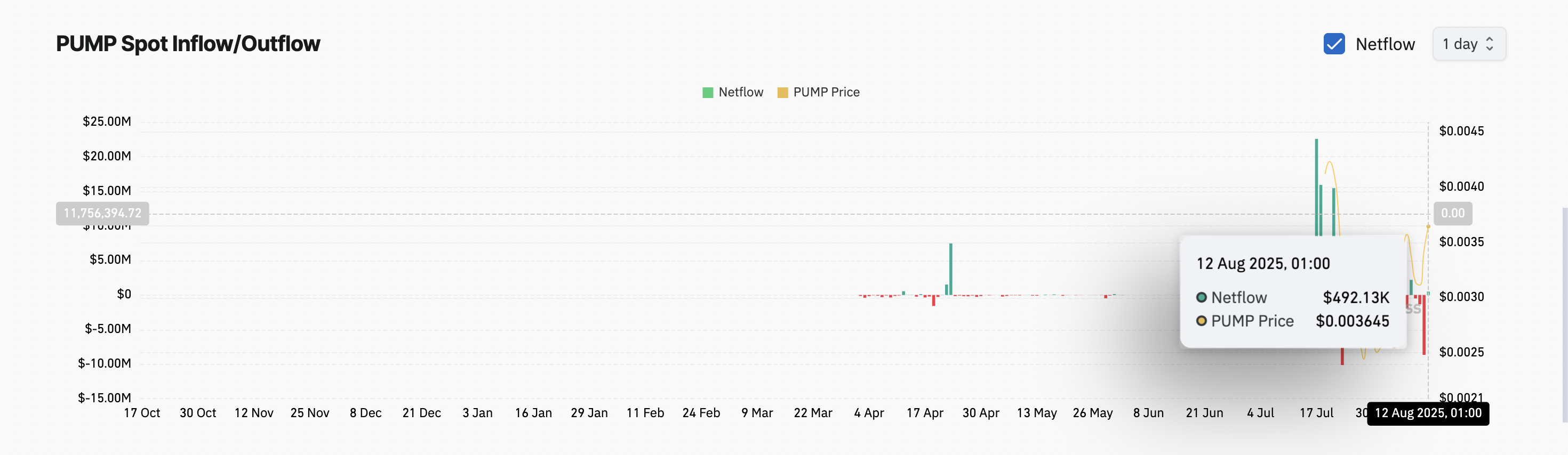 Pääoman hitaasti palatessa meemikolikon markkinoille, PUMPin spot-markkinoille on tänään sijoitettu yhteensä 492 130 dollaria.