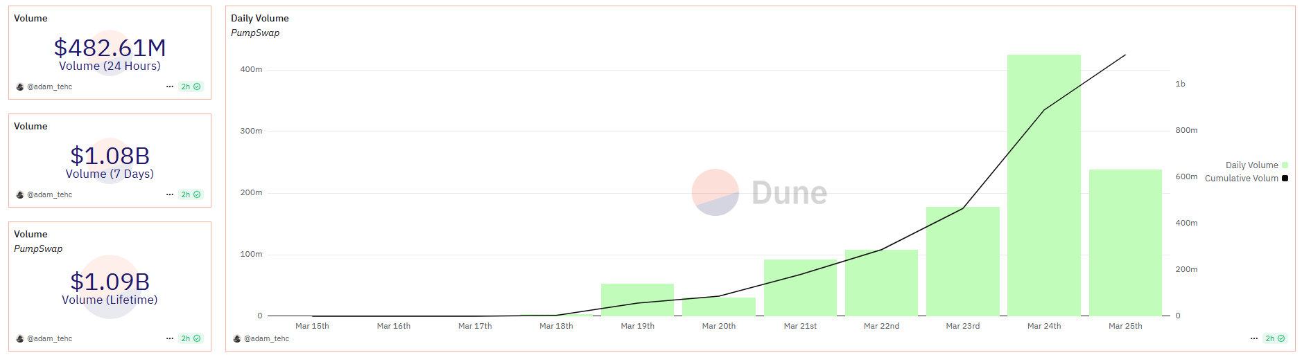 20. maaliskuuta 2025 lanseerauksensa jälkeen PumpSwap on saavuttanut vaikuttavia virstanpylväitä, vakiinnuttaen asemansa Solana-ekosysteemissä.
