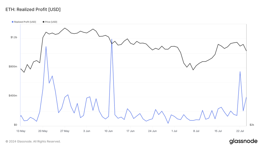 Kiinnostavaa kyllä, tämä 747 miljoonan dollarin voitonotto tapahtui juuri päivää ennen ETH ETF:ien lanseerausta. Tämä osoittaa, että vaikka yksityis-sijoittajilla ei ollut näkemystä tulevasta, he silti päättivät turvata voittonsa.