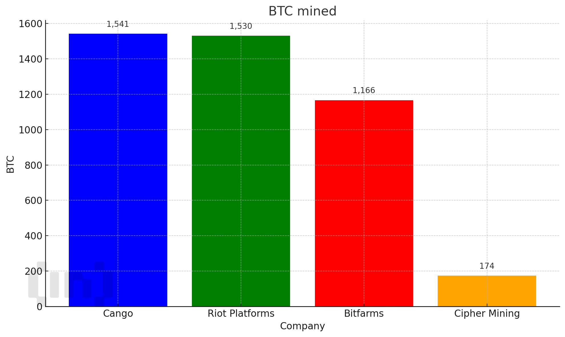 Louhintatuotannossa Cango oli kärjessä 1 541 BTC:llä, jota seurasivat Riot Platforms (1 530 BTC) ja Bitfarms (1 166 BTC). Cipher Mining louhi huhtikuussa 174 BTC:tä, mutta myi 350 BTC:tä, vähentäen omistuksiaan 855 BTC:hen, joista 379 BTC:tä oli vakuutena.