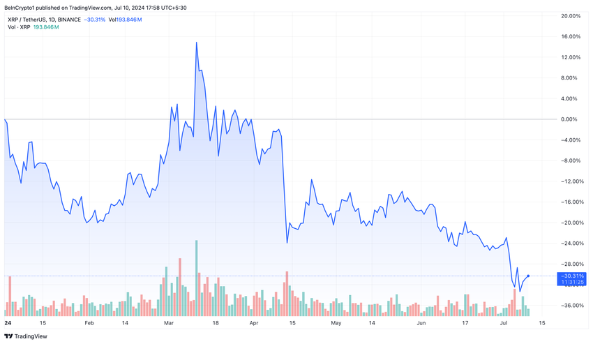 Kauppa ei vaikuttanut suoraan XRP:n hintaan. Altcoin on kuitenkin ollut markkinapaineen alaisena jo jonkin aikaa.