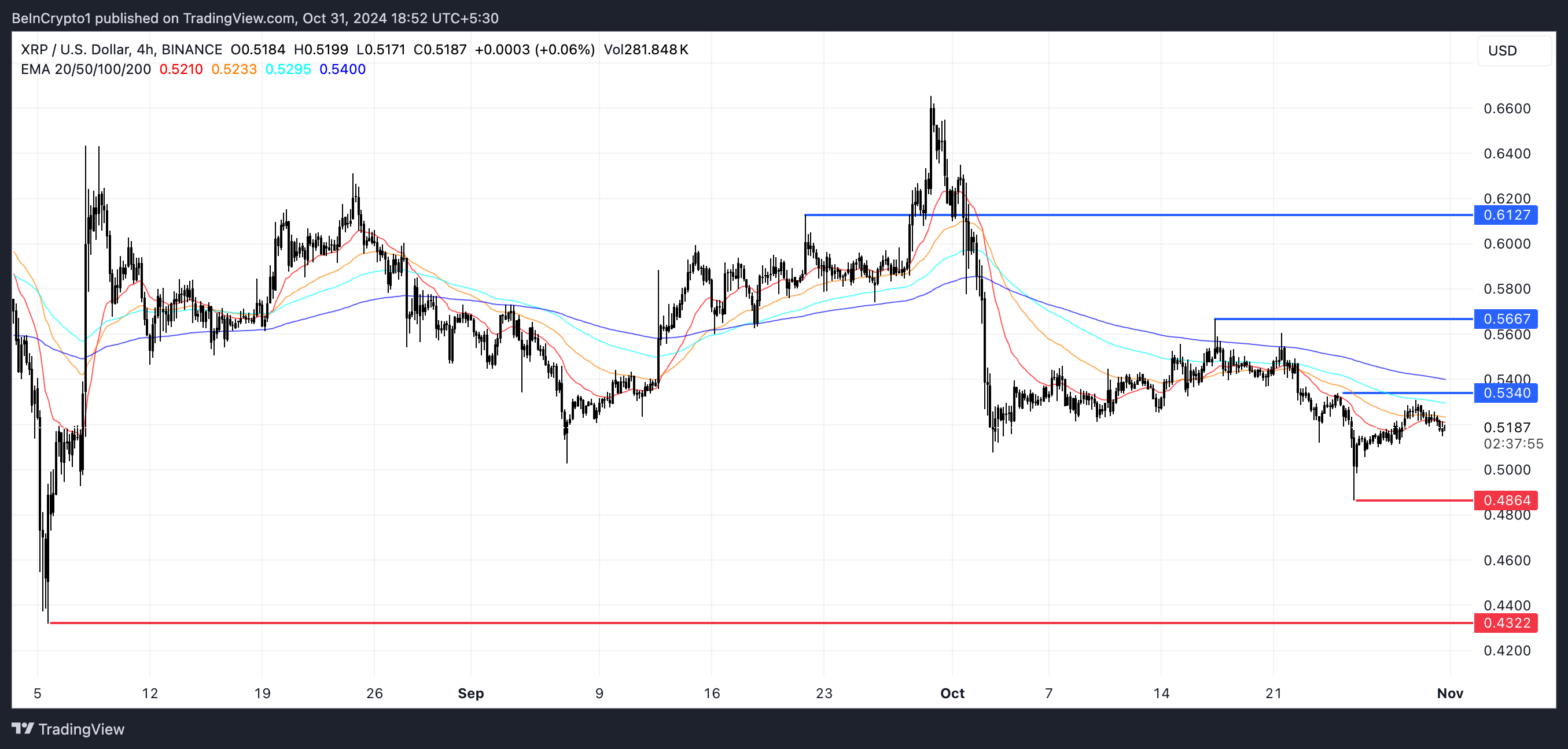 kuitenkin, jos suuntaus kääntyy, XRP saattaa nousta kohti korkeampia vastustustasoja.
