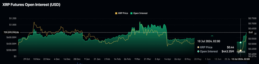 Kauppiaat tällä hetkellä lyövät vetoa XRP:n hinnan noususta, mikä ajaa tätä Open Interestin nousua. Kasvu osoittaa, että markkinaosapuolet luottavat yhä enemmän siihen, että XRP:n hinnat saattavat nousta edelleen.