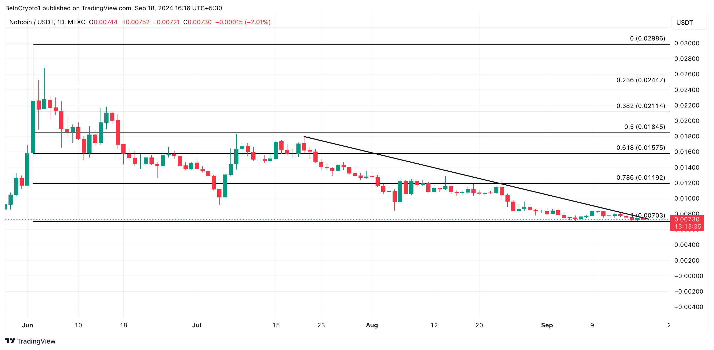 Jos altcoin rikkoo syyskuun 6. päivästä lähtien ylläpitämänsä nousevan trendilinjan alapuolelle, se saattaa kohdata edelleen 18% laskun.