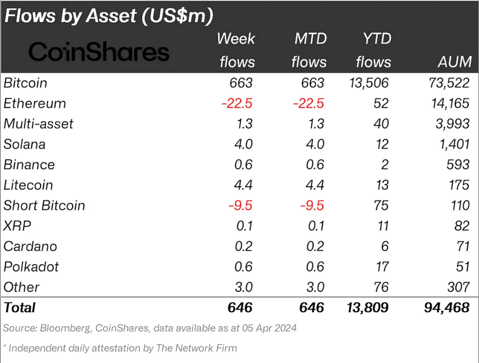 CoinSharesin digitaalisen omaisuuserän rahastovirtaraportin mukaan XRP huomasi vain 0,1 miljoonan dollarin arvosta sisäänvirtauksia instituutioilta 5. huhtikuuta päättyneellä viikolla. Vertailun vuoksi Litecoin, Polkadot ja jopa Binance BNB-kolikko rekisteröivät vastaavasti 4,4 miljoonaa dollaria, 0,6 miljoonaa dollaria ja 0,6 miljoonaa dollaria.
