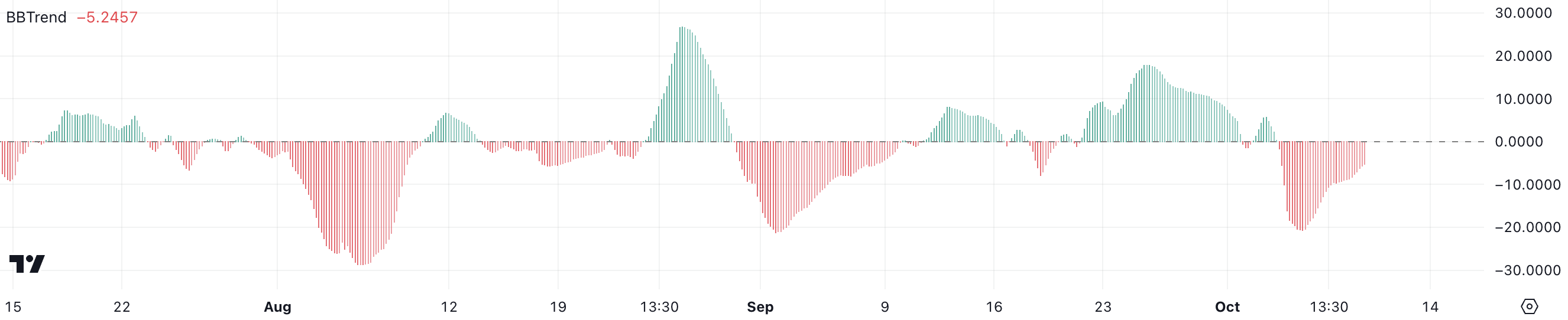 BBTrend on momentumin indikaattori, joka johdetaan Bollingerin nauhoista. Se mittaa volatiliteettia auttaakseen arvioimaan, onko omaisuusvarassa härkä- vai karhumarkkina. Negatiivinen BBTrend viittaa karhumaiseen momentumiin, kun taas positiivinen viittaa härkämäiseen momentumiin.