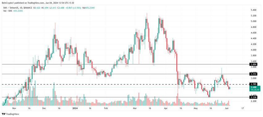 Nousu ei kuitenkaan voinut jatkua, mikä johti Synthetixin hinnan laskuun. Näin ollen altcoin on konsolidoitu alle 3,15 dollariin, mutta sen arvo on yli 2,33 dollaria.