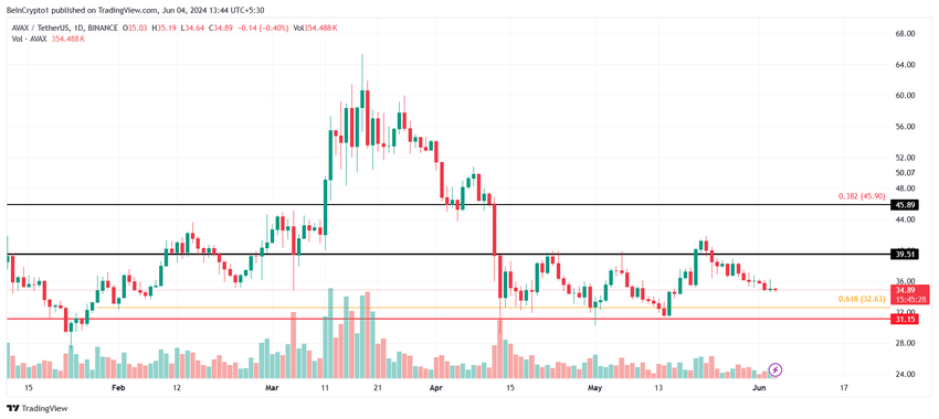 Avalanche on konsolidoitu 40–32 dollarin välillä parin viime viikon aikana. Huolimatta useista näiden alueiden kokeista vastuksena ja tukena, AVAXin yritykset murtautua niiden läpi ovat epäonnistuneet.